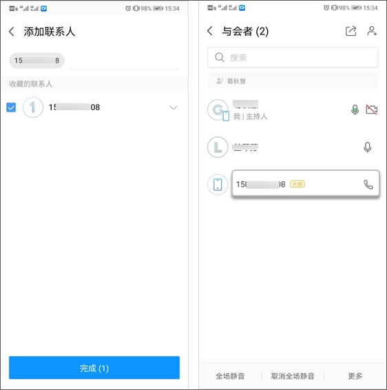 在通讯录中搜索并直接添加软终端或硬终端作为与会方,即可快速发起会议。