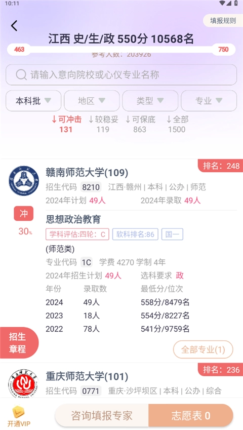 3、全面的志愿填报信息涵盖大学的学科建设、师资力量、校园环境等内容,能帮助考生清晰了解各所学校的特色与优势。