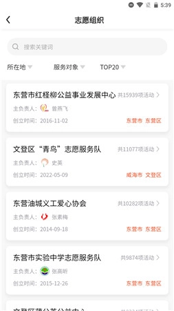 1、项目搜索,搜寻近期志愿项目,随时报名做志愿;
