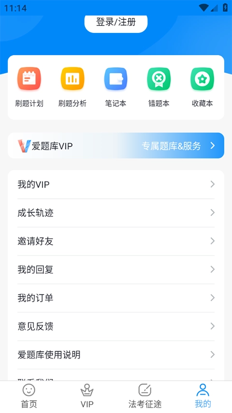 在“我的”页面中,用户能够查看刷题过程中记录的笔记本、错题本和收藏本,同时也可以制定专属的刷题计划。