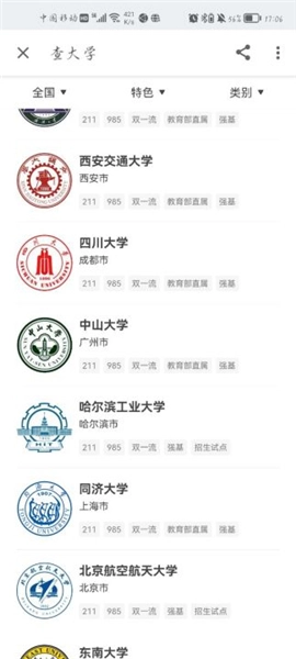 4、再比如热门大学板块,在这个板块里我们能够看到近年来热度很高的大学的相关资料信息。