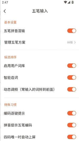4、用户可以自己的习惯来设置五笔输入方式
