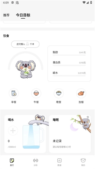 3、在首页就能看到今日目标,还可以记录你每天的饮食量和运动量哦。