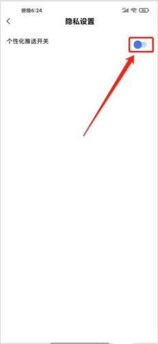 3、进入隐私设置页面,找到【个性化推送开关】,点击其右侧的按钮将其关闭。