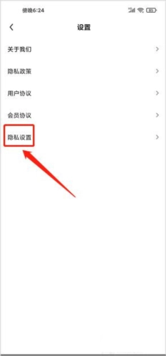 2、进入设置界面,点击【隐私设置】;