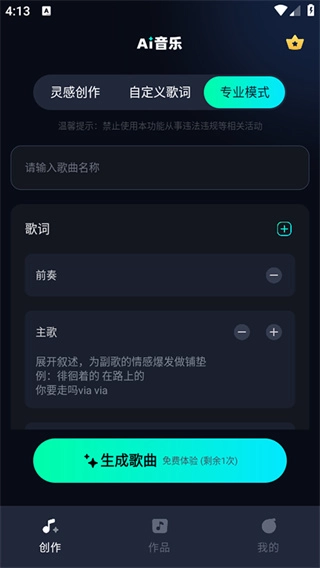 3、整合歌词生成、音乐制作、播放、分享等功能,打造“创作-试听-分享”的一站式体验。