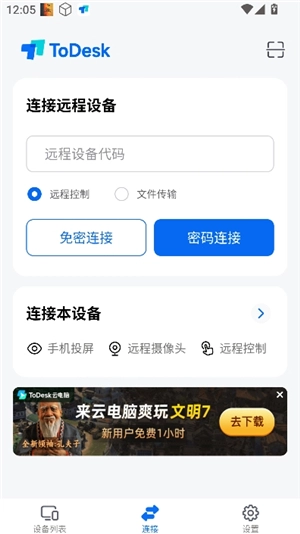 todesk远程控制是一款界面简洁、操作便捷的正规无线连接工具,借助它用户能够与各类智能设备互联互通,达成远程操控,让你可以随时随地访问家中或公司里的电脑设备,并且安全可靠,不会泄露隐私和重要文件,感兴趣的小伙伴快来试试todesk远程控制吧。