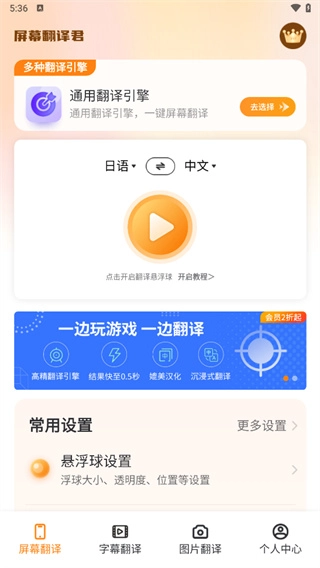 5、悬浮球设计——操作更便捷,点击悬浮窗就能在任意界面实现全屏翻译,无需切换界面;还支持自动翻译功能,可快速翻译聊天输入框内的文字。