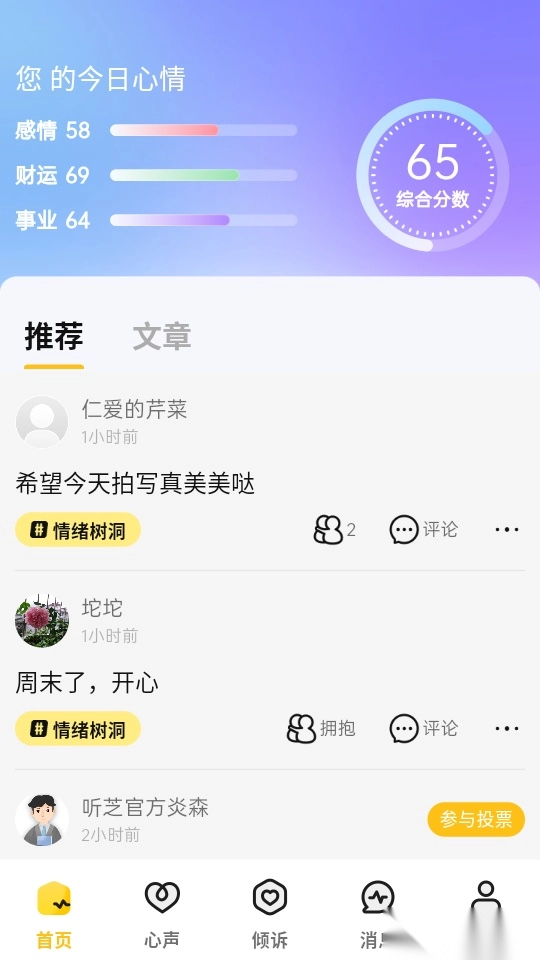 支持用户实时倾诉自己的新生,就可便捷倾听困扰,实时走出困境。