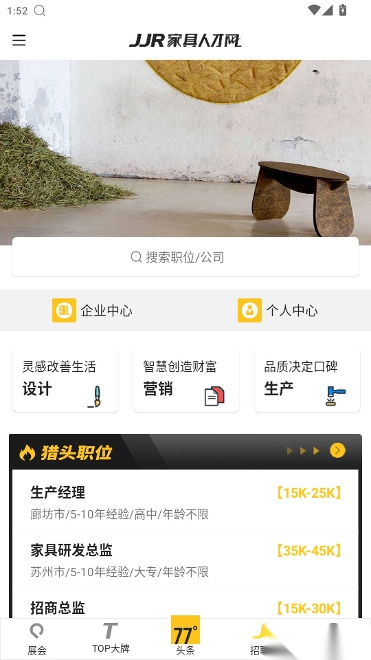在招聘中心能够查看家具行业的全部职位招聘信息,便于用户寻找心仪的工作。