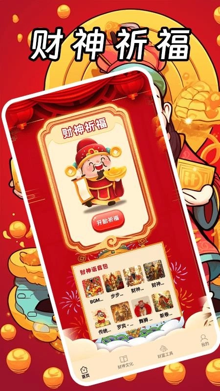 财神好运来是一款集合财神祈福、语音包、文化介绍与实用财富工具的软件。这里对传统财神进行了图文结合的细致讲解,方便用户直观认识每位财神;用户可随时在此向财神祈福,助力心愿达成。软件提供丰富的财神语音包,任你随心选用,为生活增添财运氛围。此外,还支持参与财神文化知识问答挑战,让你在答题中学习并拓展相关文化知识。同时,软件还配备了财神头像、壁纸、发财语录、闹钟、日历等多种功能,满足日常所需。有需要的用户,不妨来财神好运来体验一番!