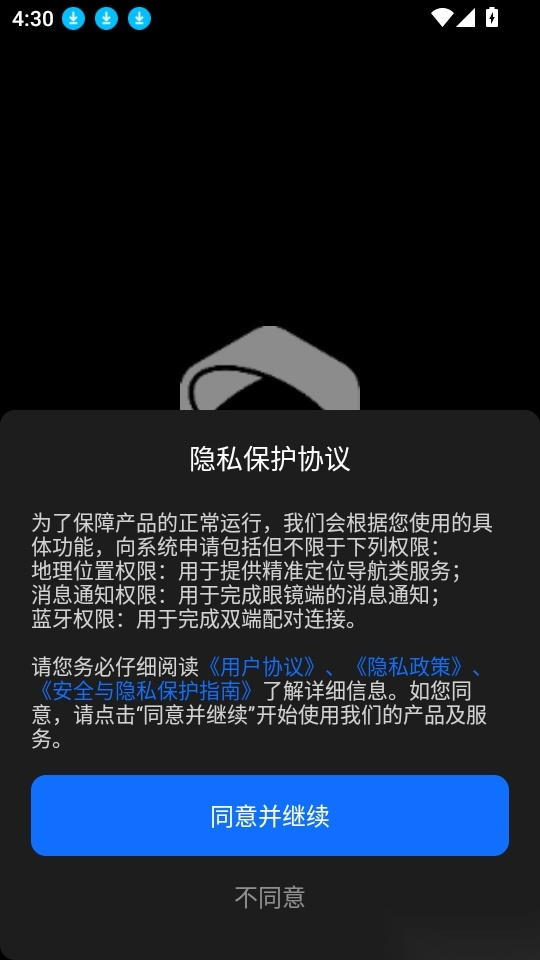 1、首先打开应用点击“同意并继续”按钮来进入中。