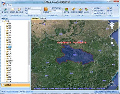 1、启动91卫图助手,win7及以上系统建议以管理员身份运行该软件,打开后将地图缩放到目标区域。
