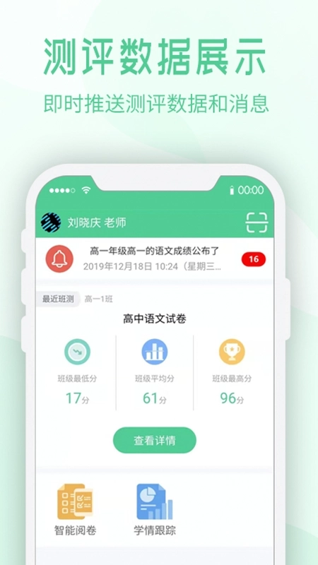 可以轻松掌握各班级及每位学生的考试状况,同时了解其学习动态轨迹。
