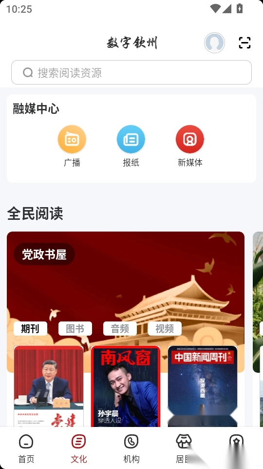2. 在软件首页界面找到底部菜单栏中的“文化”功能模块按钮并进入