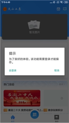 1、完成登录、注册操作,首次打开天山工惠应用程序,进入欢迎页面后系统会自动跳转至主页。