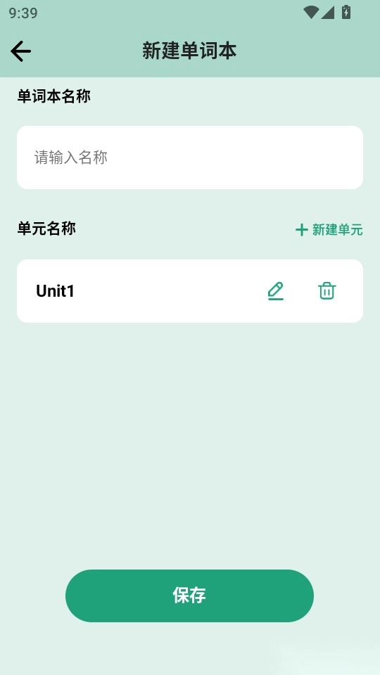 4. 进入新建单词本的界面后,你就能自定义添加新的单元名称了。