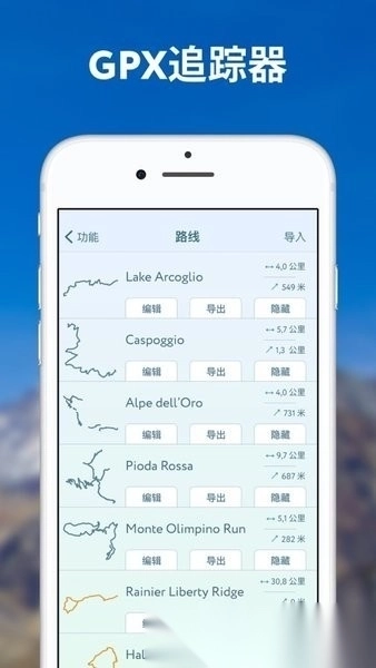 3、远足路径规划:该应用整合了全球海量徒步路径与步道资源,可协助用户规划远足路线、测算步行距离、查看高程剖面数据并预估行程耗时;为方便用户安排行程,我们还在3D地图上标注了山间小屋、停车场、缆车、观景台以及城堡等各类可能吸引用户的地点。