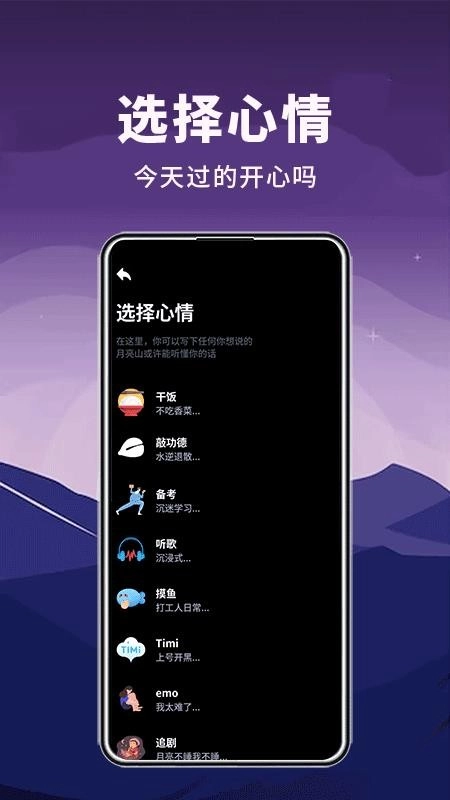月亮山是一款实用的多功能睡前日记软件,致力于为用户提供贴心畅快的生活日记记录服务。用户每天都能在应用里添加并保存重要信息,方便未来回顾,回味自己的美好生活;还能根据自身状态选择对应的心情,精准记录信息,确保记录无忧;也可以在应用中写下灵感,展现才华,留存每一篇重要且精彩的文章,便于随时阅览。此外,月亮山还为用户准备了丰富场景,可自由选择体验,沉浸其中,助你拥有更美好优质的睡眠。感兴趣的伙伴快来试试吧!
