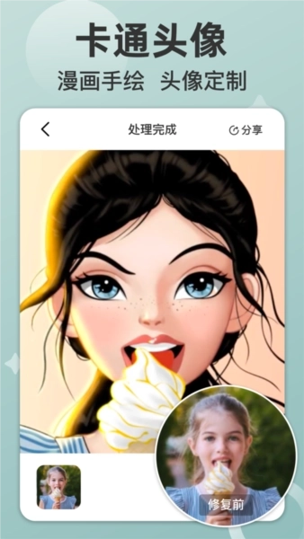 2、软件支持用户在完成不同图片的修复后,一键保存或分享修复后的图片,方便用户更好地共享图片。