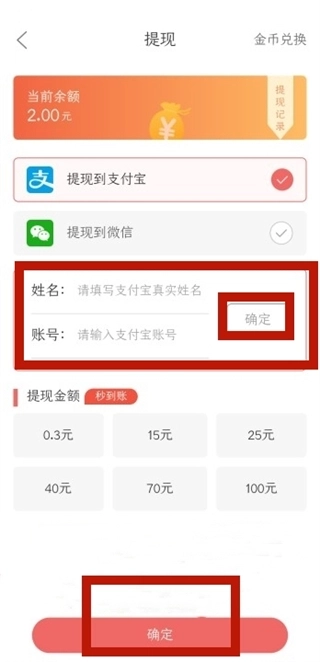 4、支持提现至支付宝或微信,输入已绑定的对应账户信息即可完成提现操作。