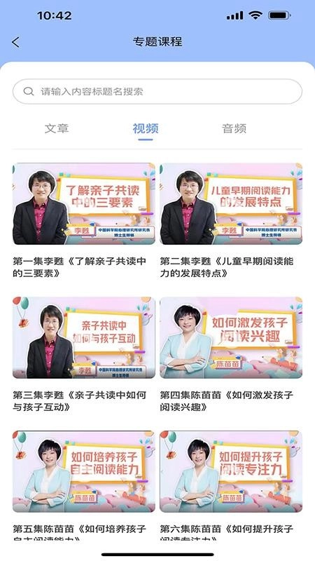 1、在软件里,用户能够查找适合自己的家庭教育课程资源进行观看学习;