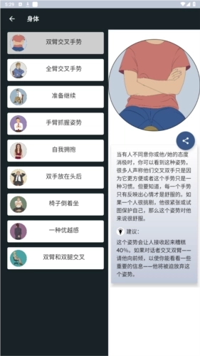 3、借助这款应用程序,你能够学会解读肢体语言与手势,从而知晓他人内心的想法。