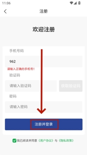 填写手机号、验证码、密码等相关信息,接着点击注册按钮,完成注册流程后即可登录使用。