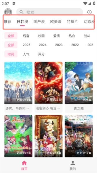 4.此处的动画分类清晰明了,能让用户迅速定位到自己想看的动画视频。