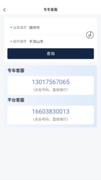 通过软件一键拨通本地客服叫车服务。