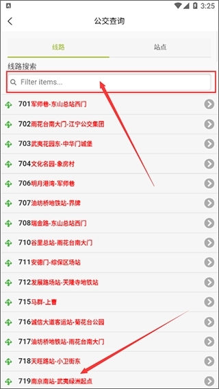 4、打开软件后,输入线路号,列表会显示该线路的上下行方向,接着选择需要查询的线路行驶方向即可。