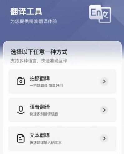 根据需求,您可以自行选择拍照、语音或文本翻译方式,都能快速得到翻译结果。