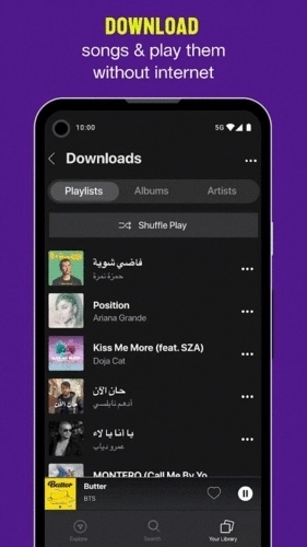 也可以通过我们的AnghamiPlus计划来享受终极的Anghami体验,以此达成更多目标!音乐方面,无需联网就能播放,现在就可以畅享AnghamiPlus带来的不间断音乐啦。