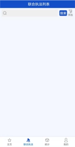 7、点击下方菜单中的“联合执法”选项,即可进入联合执法页面。该页面涵盖新任务、进行中、已完成三类任务状态,支持筛选功能供用户选择。