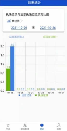 统计菜单可查看执法证出示次数、执法时间以及执法次数等相关信息。