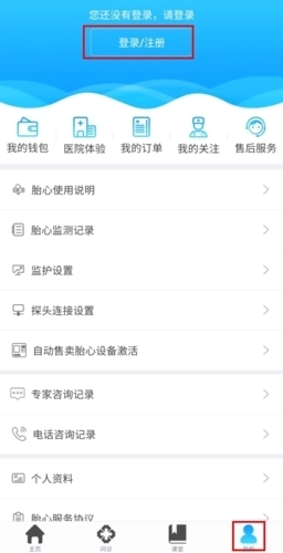 1、在我的页面中点击登录/注册按钮;
