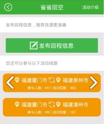省省回空,发布回程信息,精准推荐货源,优质线路一网打尽。