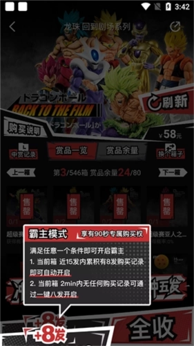 (eg.剩余50发时,用户A若此刻抽取8发,此时余量小于45发,也会启动霸主)