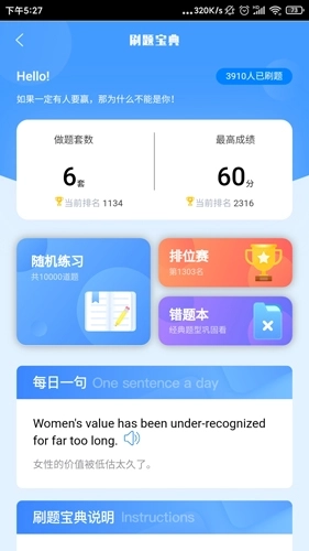 2、设有每日一句板块,每天都会更新并推送一句英语句子,同时附带中文翻译,只需一键就能收听语音朗读。