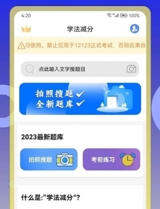 学法减分扫答案是一款面向驾驶人的应用,主要功能包括拍照搜题、模拟测评、查漏补缺等,目的是帮助用户减免违章扣分。该应用响应国家减免违章扣分政策,用户通过这款软件学习并通过考试后,就能减免驾驶证累积记分,每个记分周期最多可减免6分,从而让驾驶证有更多处理违章的空间。这款App能便捷地解决学习过程中的问题,契合现代学习的需求,欢迎大家马上体验。