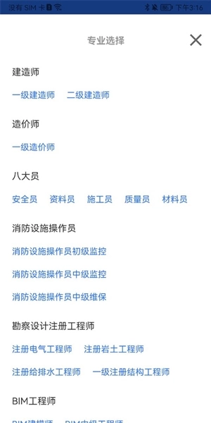 1、首先进入一建二建建工题库,选择你的专业;