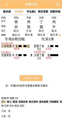 6.便捷实用,周易卦辞与焦氏易林内容;提供年月日时干支的直观提示;涵盖各类时间神煞信息;同时参考古今易学典籍,针对用神、忌神、元神、仇神,给出旺相休囚、十二状态、空破、刑冲合害、三合三会等六爻断卦常用的关键判断依据提示。