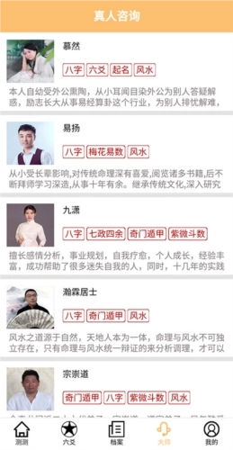 1、点开【大师】界面,即可查看命理师列表。