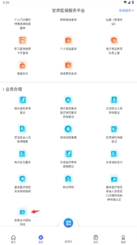 1、参保群众可登录甘肃医保服务平台,进入“服务”区域后找到“业务办理”模块,点击【医保支付密码修改】功能即可完成密码修改。
