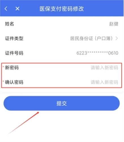 2、进入修改界面后,需要仔细核对个人信息,确认信息准确无误后,输入新的6位数字密码,接着再次输入新密码以确认两次输入一致,随后点击“提交”按钮,继续进行后续操作。