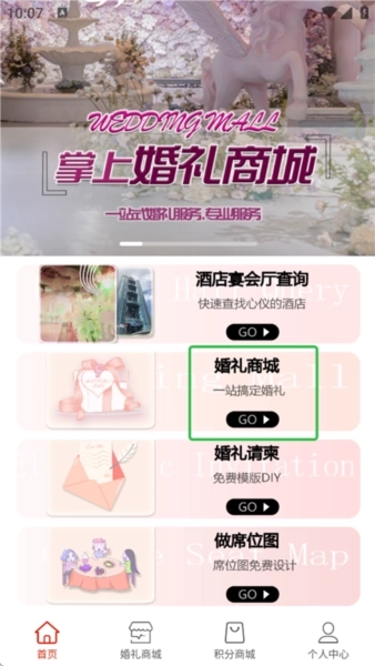 1.一站式服务:集婚宴预订、婚礼策划、四大金刚选择、婚纱摄影等于一体,无需切换多个平台。