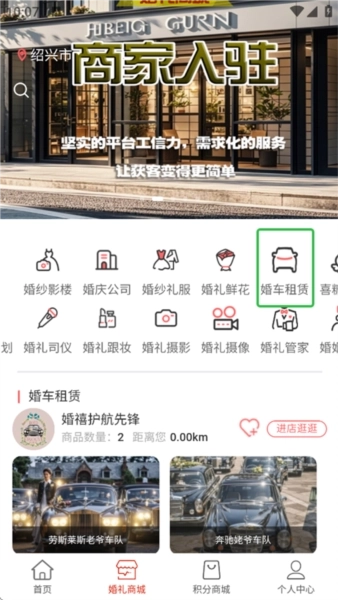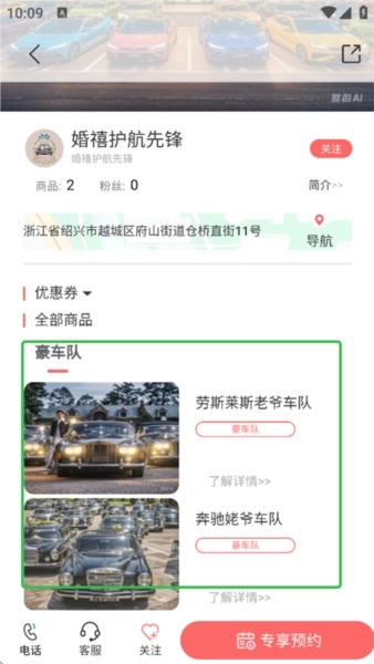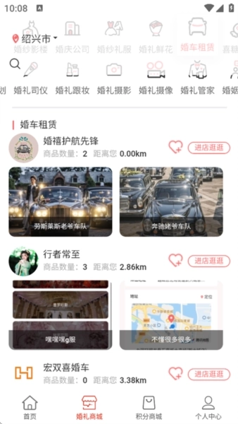 3、用户可浏览查看并比较各个租赁店,选择最合适的进行店铺租赁婚车。