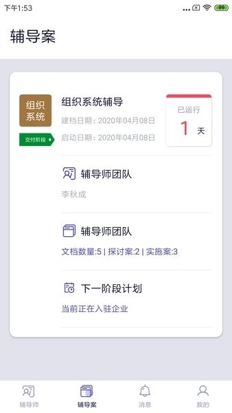 6、辅导案直观地向用户呈现各类信息,涵盖辅导师团队、文档数量、下一阶段计划等内容。