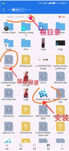 ②安装apk文件,并将后缀为so的文件放置到存储根目录(具体位置可参考下图)