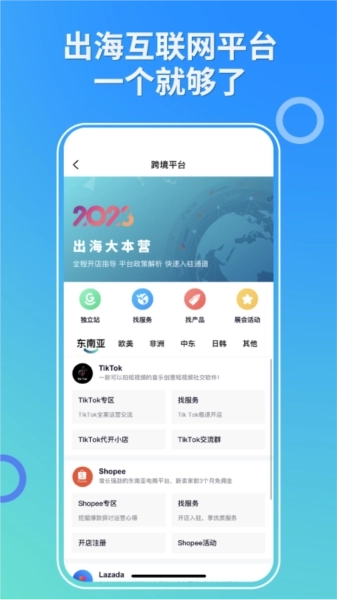 平台整合了跨境电商平台、独立站点、出海指南等多元服务资源,为用户提供跨境领域各行业及平台的最新动态资讯、官方公告、展会详情、活动预约、精选商品以及行业话题讨论等一站式跨境服务。用户无需切换多个平台,即可便捷获取所需服务内容,全方位满足不同层次的跨境业务需求。